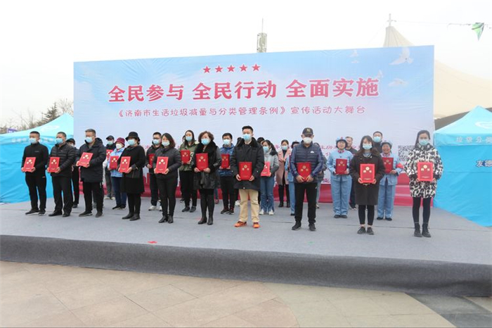春到泉城,百花齊放,萬象更新。 3月19日下午,濟南王官莊社區(qū)大眾廣場樂聲悠揚、舞姿翩翩、笑聲連連,由濟南市市中區(qū)城管局、王官莊街道辦事處主辦,友德(山東)資源循環(huán)科技有限公司承辦的“全民參與 全民行動 全面實施 《濟南市生活垃圾減量與分類管理條例》宣傳活動大舞臺”盛大開啟。市中區(qū)副區(qū)長殷繼明、市中區(qū)城管局副局長林學彬、王官莊街道黨工委書記張敬軒、王官莊街道辦事處主任冉秀玲以及市中區(qū)住房和城鄉(xiāng)建設局、市中區(qū)文旅局、市中區(qū)文學藝術界聯(lián)合會、市中區(qū)體育事業(yè)發(fā)展中心、濟南市育賢中學、山東中景大觀商業(yè)經(jīng)營管理有限公司等單位領導出席;友德資源董事會單計磊、董建華出席活動現(xiàn)場。